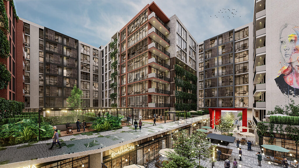 Additionally, in partnership with Paga Desarrollos, we are working on Amara, a mixed-use development to revitalize the heart of the Purísima-Alameda District. This project includes a 23-story residential tower, a six-story office building, and ground-level commercial spaces, all interconnected through Plaza Alameda — a public space designed to foster community, encourage social interaction, and energize the urban fabric.