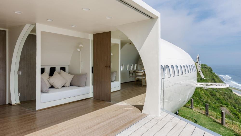 Geometrium Studio fue el encargado de convertir un avión Boeing 737 es una villa de lujo: Private Jet Villa, la cual está situada en la península de Bukit, a una altitud de 150 metros sobre el nivel del mar, en la Isla de los Dioses, Bali.