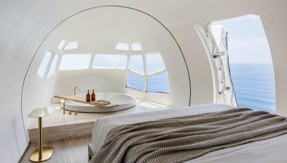 De acuerdo con Geometrium Studio, Private Jet Villa cuenta con dos dormitorios, una zona de cocina con isla y sofá, así como un jacuzzi en la antigua cabina del piloto, una bañera independiente, además de todo lo necesario para ofrecer un alojamiento confortable como áreas de recreación en las propias turbinas.