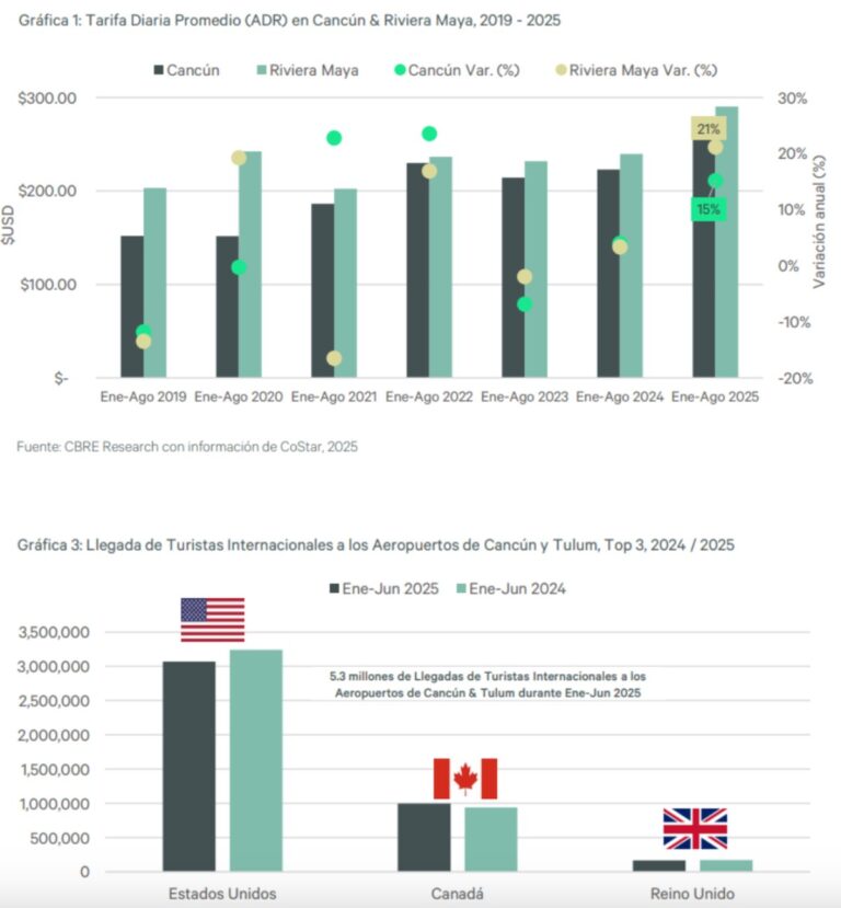 “Estos resultados muestran que, a pesar de los retos coyunturales, Cancún y la Riviera Maya continúan consolidándose como destinos estratégicos para la inversión hotelera y turística en México. El crecimiento en tarifas y RevPAR evidencia la resiliencia del sector y su capacidad de generar valor en el mediano y largo plazo”, señaló Christian Lega, Vice President Hotels, CBRE México.