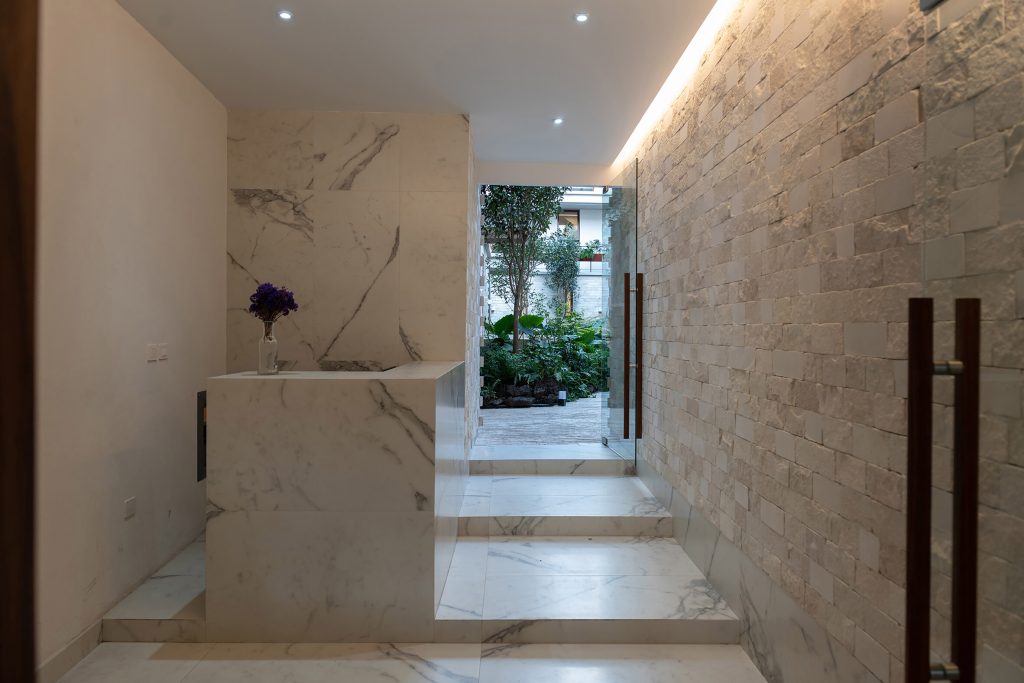 En la planta baja del recinto, CPDA destino un área para formar un umbral con escaleras de porcelana blanca, las cuales conducen a un espacio comercial. Asimismo, hay otro que está en forma de frontón, que conduce al vestíbulo del edificio con dirección a los departamentos y al garaje subterráneo.