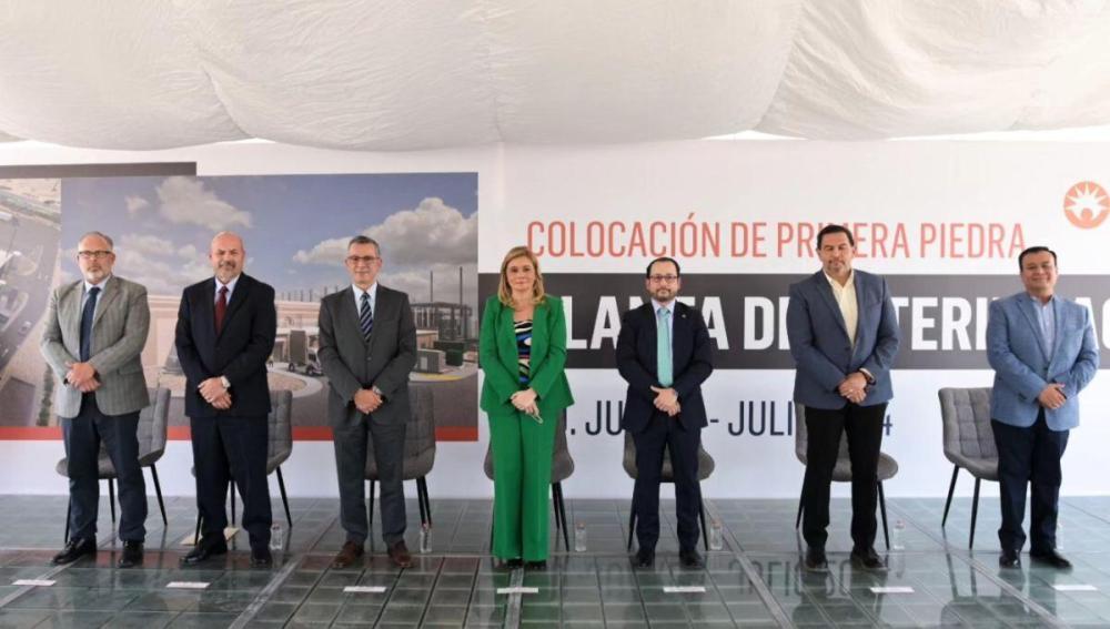 Autoridades del gobierno estatal, colocaron la primera piedra de planta. Foto: @MaruCampos_G