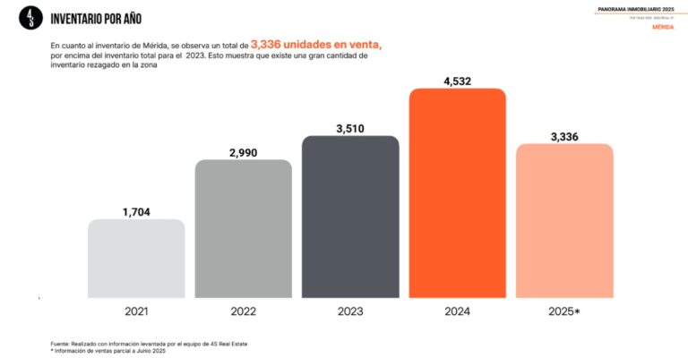 4S Real Estate destacó que el mercado de vivienda vertical en Mérida mostró un comportamiento heterogéneo en el primer semestre de 2025. Mientras que el sector residencial concentró el 66% de las ventas, 19 puntos más que en 2024; el segmento medio experimentó una caída del 14%, a pesar de representar una porción esencial de la demanda local.