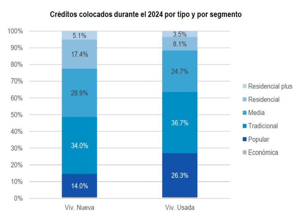Con respecto a la vivienda usada, el segmento más demandado fue Tradicional (36.7%), seguido de Popular (26.3%), Media (24.7%), Residencial (8.1%) y Residencial Plus (3.5%).