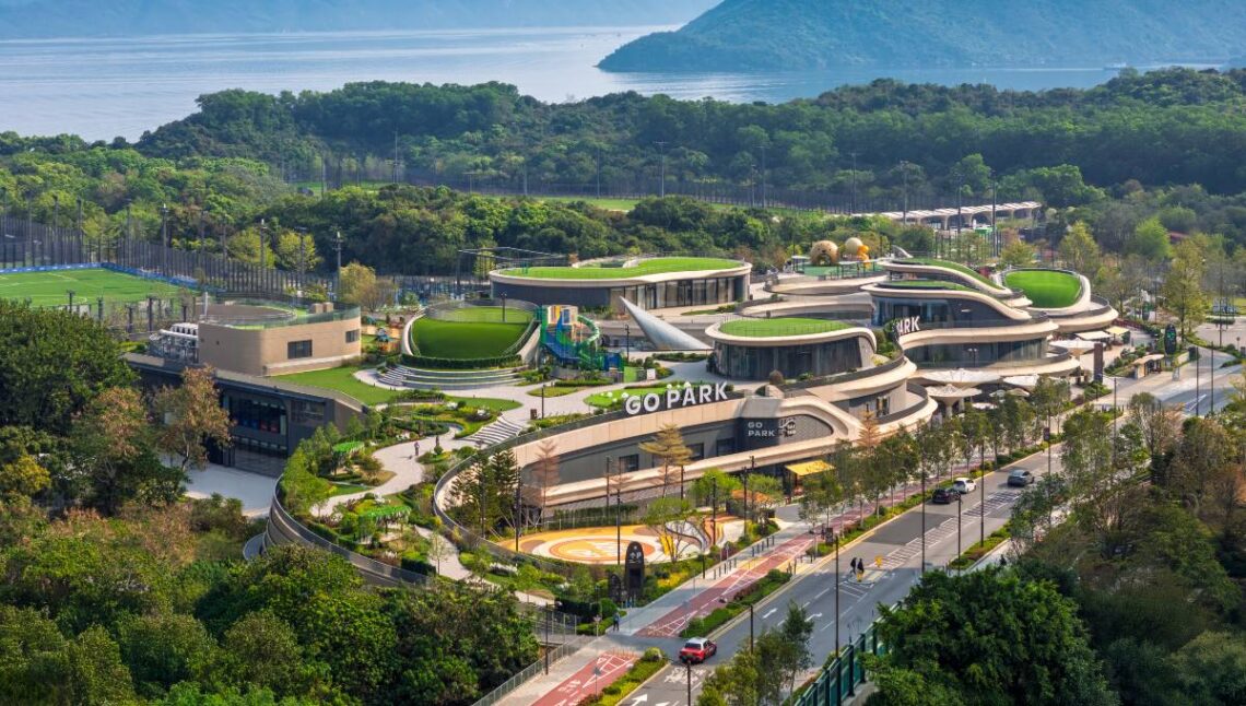 GO PARK Sai Sha es el primer proyecto deportivo y comercial de Zaha Hadid Architecs en Asia, se encuentra ubicado entre las montañas del Parque Rural Ma On Shan de Hong Kong y las aguas protegidas de la Ensenada Three Fathoms, que desemboca en el Mar de China Meridional.