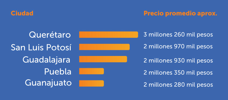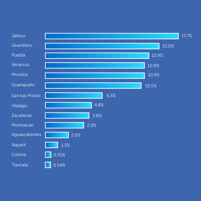 En los 11 estados que conforman el 80% de la demanda total de inmuebles en México se pueden encontrar: Jalisco, Querétaro, Puebla, Guanajuato, San Luis Potosí y Veracruz.
