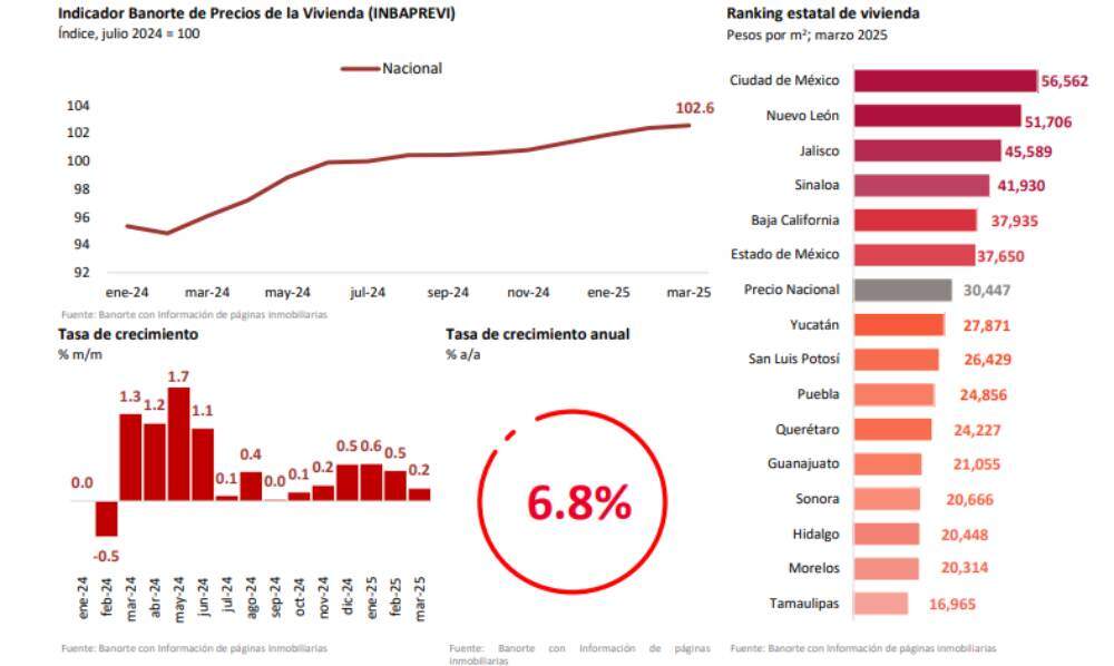 Incrementa 6.8% los precios de vivienda en marzo 2025: Banorte