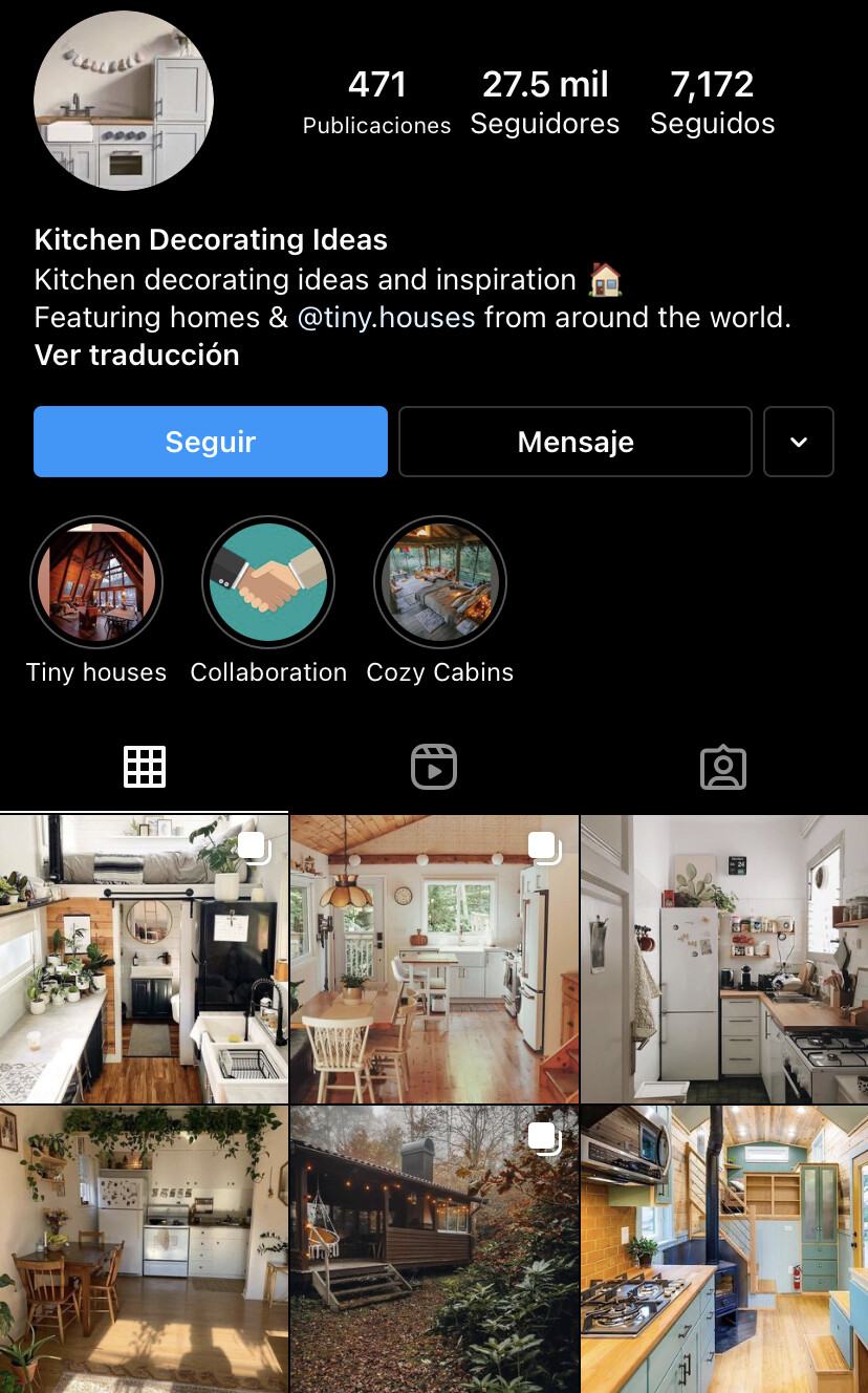 Bajo el mismo concepto de Tiny Houses, esta cuenta se enfoca en un espacio en particular de las viviendas diminutas: la cocina. Su colección de imágenes presenta una gran variedad de estilos para uno de los elementos más esenciales del hogar. De este modo inspira a sus usuarios para diseñar o remodelar sus propios proyectos.