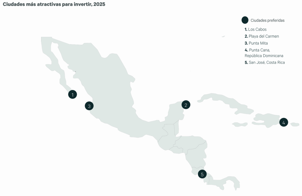 Por su parte, en las mismas regiones, diversas marcas de hoteles de lujo buscan expandir su presencia. En México, por ejemplo, se registró un aumento de 6.7% en el gasto de turistas internacionales en 2024. En este sentido, Los Cabos y su segmento de lujo, el cual fue nombrado el destino preferido para invertir, ha estado en auge durante los últimos años, con una ola de nuevas aperturas y proyectos, convirtiéndose en un epicentro del turismo de alta gama en la región.
