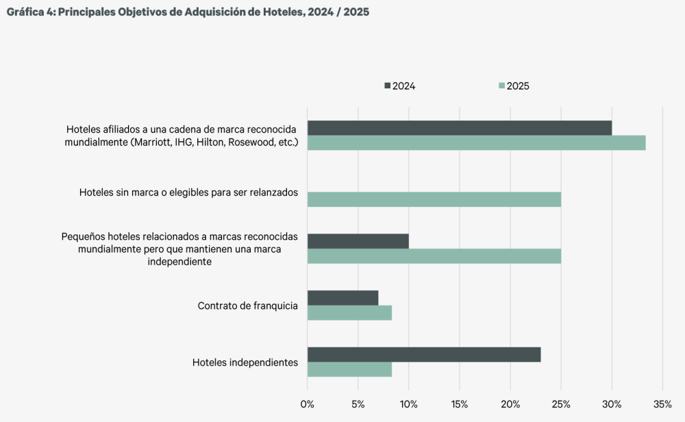 Esto corresponde con las condiciones del mercado, en las que los precios siguen siendo elevados, se buscan mayores rendimientos y los inversionistas en algunas ocasiones prefieren los hoteles sin marca para ser renovados, lo cual fue nombrado como el segundo objetivo en la adquisición de hoteles.