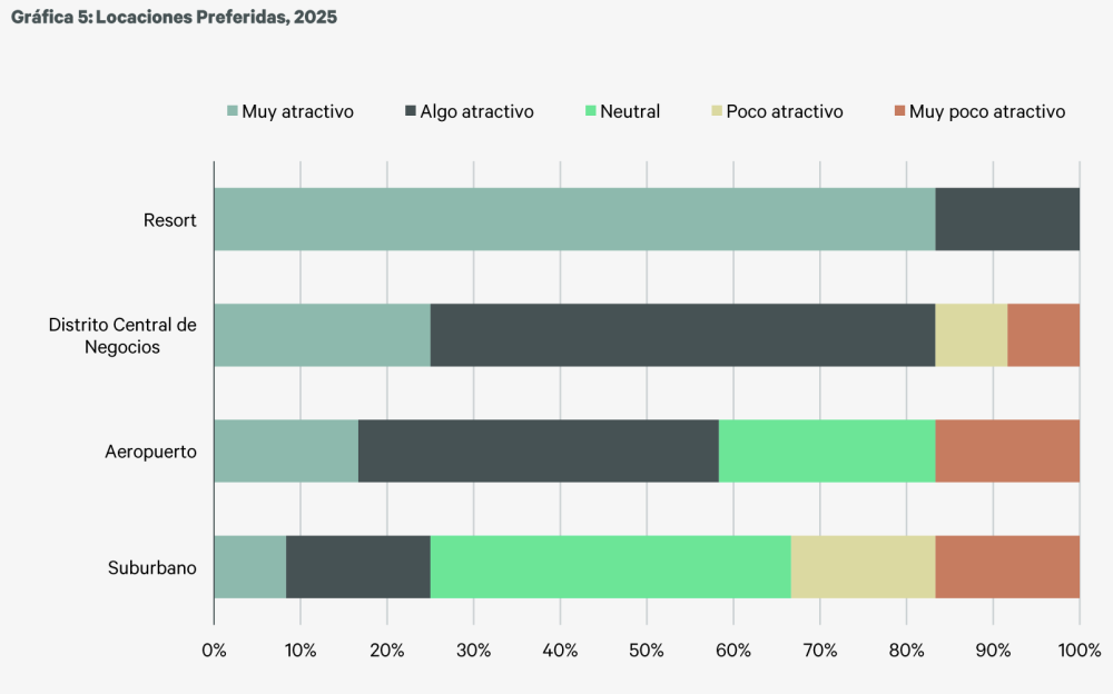 En esta misma línea, la encuesta destacó que los Resorts mantuvieron su posición como el tipo de ubicación más atractivo para las inversiones en el sector hotelero. El crecimiento de la demanda de estos activos ha propiciado la atracción de nuevos desarrollos, no solo en los principales destinos turísticos, sino también en mercados más pequeños y con alto potencial de desarrollo.