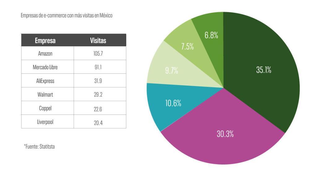 En este contexto se vieron beneficiadas diversas empresas, empezando por los gigantes del comercio electrónico: Amazon y Mercado Libre; además de compañías de retail tradicionales que abrieron sus ventas en línea como Walmart, Coppel y Liverpool. También en el último año la plataforma AliExpress logró posicionarse en el mercado mexicano. De acuerdo con Statista, las empresas antes mencionadas cuentan con los sitios web de comercio electrónico con más visitantes en México durante mayo de 2023.
