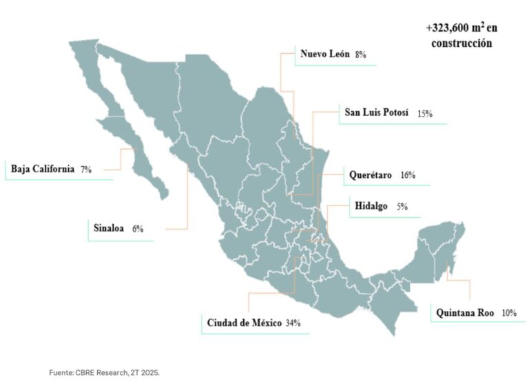 Al cierre del 1S25, el pipeline de construcción se mantuvo con más de 323 mil m2, CBRE estima que alrededor de seis proyectos puedan tener apertura al cierre del año, y se incorporen 140,000 m2 nuevos al inventario.