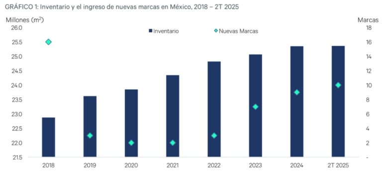 El sector de centros comerciales en México mantuvo un dinamismo constante en el primer semestre de 2025 (1S25), impulsado por la expansión de marcas internacionales, avance de proyectos en construcción y una demanda sostenida de espacios, según el último reporte de CBRE.