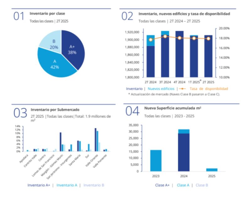 “Aunque algunos sectores han mostrado interés y han impulsado la demanda, esto no ha sido suficiente para lograr una recuperación plena ni un despegue sostenido del mercado. La combinación de nuevas empresas que buscan espacios modernos y la salida o reducción de espacios por parte de otras ha generado una dinámica en la que la tasa de vacancia se mantiene relativamente alta”.
