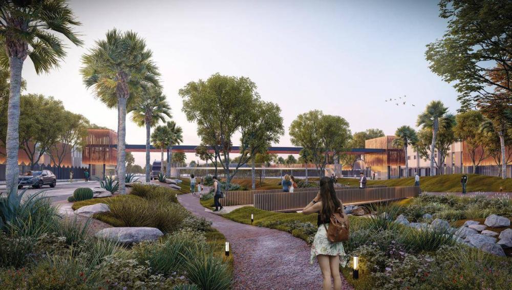 Un punto de encuentro para el usuario: Concebido como un oasis en la región, el parque promueve un fuerte sentido de comunidad y conectividad eficiente. Su diseño se enfoca en el desarrollo de una ciudad inteligente que eleva la calidad de vida de sus ocupantes y visitantes, actuando como una fuente de inspiración y un punto de referencia para el desarrollo urbano en Reynosa.