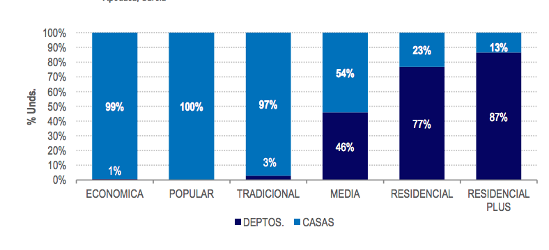 Asimismo, informa que las viviendas vendidas se distribuyeron en seis segmentos: