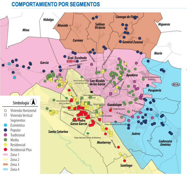 En cuanto a los municipios donde se concretaron mayor número de venta son: Monterrey, Apodaca, Juárez y García con el 64%, es decir, tres mil 963 unidades, principalmente de los segmentos: Popular, Tradicional y Media.