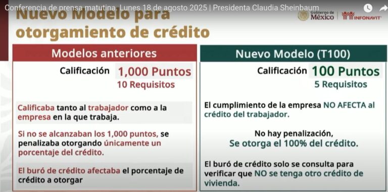 “En el modelo anterior el derechohabiente debía tener una calificación de mil 080 puntos, cumplir con 10 requisitos […] y si la empresa no cumplía con el pago de las cuotas, afectaba al trabajador, ahora no afecta, no hay penalización y se otorga el 100 del crédito”, indicó Oropeza.