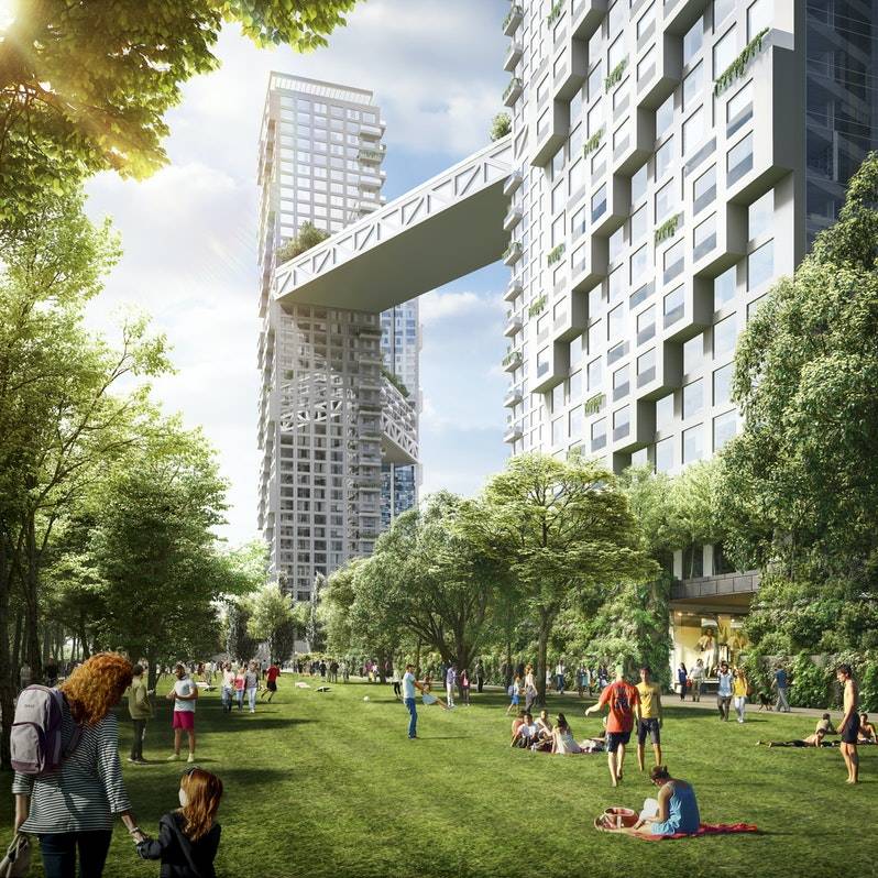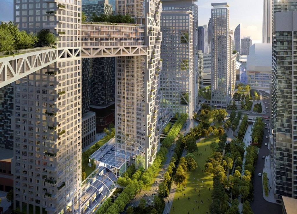 El estudio de arquitectura y diseño urbano Safdie Architects se encuentra trabajando en el diseño de ORCA Toronto, proyecto de 9 torres ubicado en Toronto, Canadá, que estarán conectadas por puentes aéreos, las personas podrán desplazarse de un edificio a otro sin tocar el suelo.