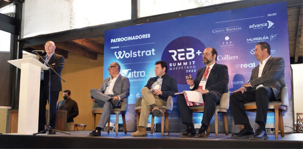 El primer panel de REB+Summit Querétaro estuvo encabezado por: Bernardo Perea del Palacio (MIRA), Juan Carlos Alfonso (Desarrolladores Inmobiliarios Wolstrat), José Serur (IDEURBAN) y Silvano Solís (UCALLI), el moderador fue Rodrigo Villaseñor (Site Solución Inmobiliaria).