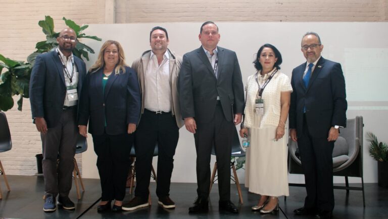 El panel sobre la perspectiva económica inmobiliaria, que abordó las batallas comerciales, la política comercial de EE. UU., el factor China y el USMCA, contó con la participación de Marisa Carballo, Segunda Directora de Desarrollo Comercial del Puerto de Los Ángeles; Carlos Jaramillo, Director Ejecutivo en Seica; Raúl Arroyo, Director Ejecutivo en Industrial Gate; Vijay Pandurangadu, Vicepresidente Senior en MBK Industrial; y Marlen Marroquín, Directora de Excelencia de la Cámara de Comercio de EE. UU.