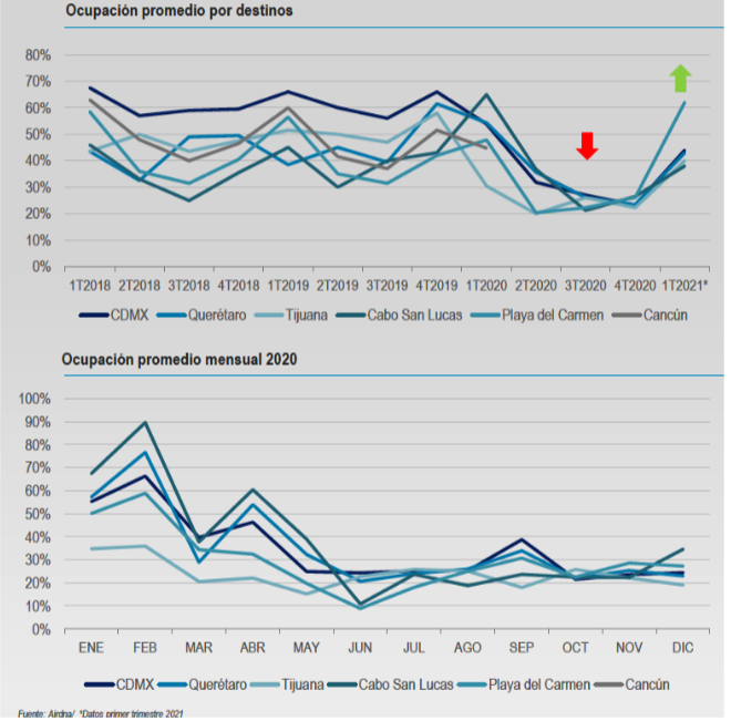 “En cuanto a ocupación promedio, Playa del Carmen muestra la mayor recuperación con un 62% contra el 20% mostrado durante el 2T2020. La CDMX presenta actualmente una ocupación del 44% contra el 25% mostrado en alojamientos tradicionales, como hoteles”, puntualizó Marisol.
