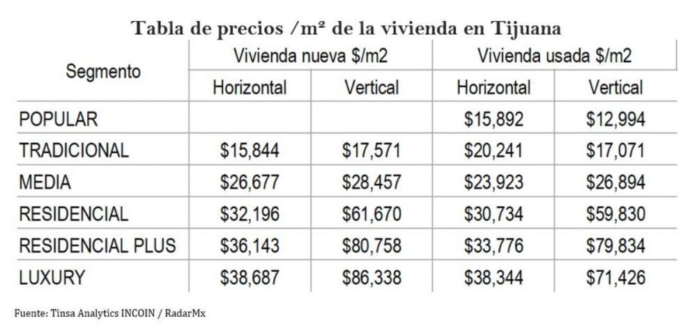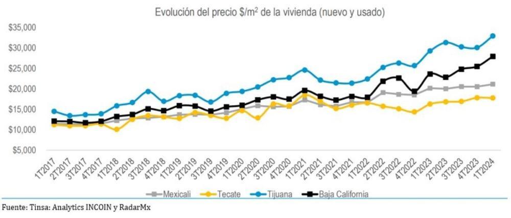 Tinsa informó que el precio por metro cuadrado (m2) en Tijuana presentó un crecimiento anual del 17%, siendo el más alto si se compara con otras ciudades fronterizas como Mexicali o Tecate.