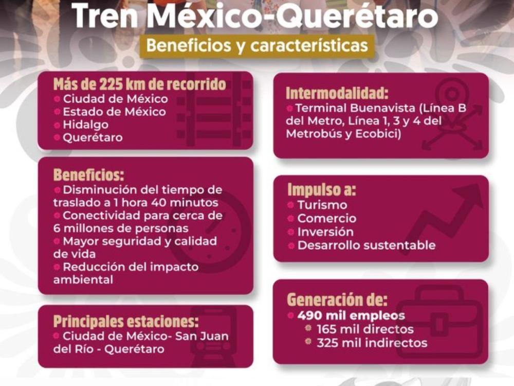 Contará con paraderos en poblaciones intermedias para el beneficio de seis millones de personas de 22 alcaldías y municipios; a la par, ofrecerá conexión intermodal en la terminal de Buenavista con la Línea B del Metro; las líneas 1, 3 y 4 del Metrobús, y Ecobici, y en la terminal de Querétaro con la conexión del Querétaro Bus.